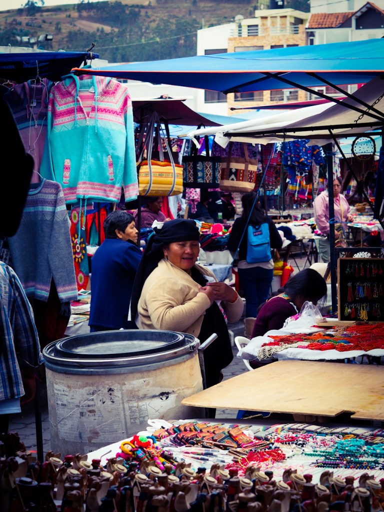 In dieser Woche besuchen wir auch die auf 2500 m gelegene Stadt Otavalo und deren Samstagsmarkt. Wir spazieren an kunterbunten Marktständen vorbei, an denen uns neben Schmuck, Kleidung und Alpaka-Wäsche Lebensmittel, Musikinstrumente und Vieles mehr angeboten werden. Die ca. 100 km lange Autofahrt nach Otavalo dauert einerseits wegen der nur selten erlaubten Höchstgeschwindigkeit von 100 km/h und andererseits aufgrund unseres umsichtigen Taxifahrers, welcher uns Pflanzen und für uns exotische Früchte auf dem Weg zeigt und erklärt, verhältnismäßig lange.