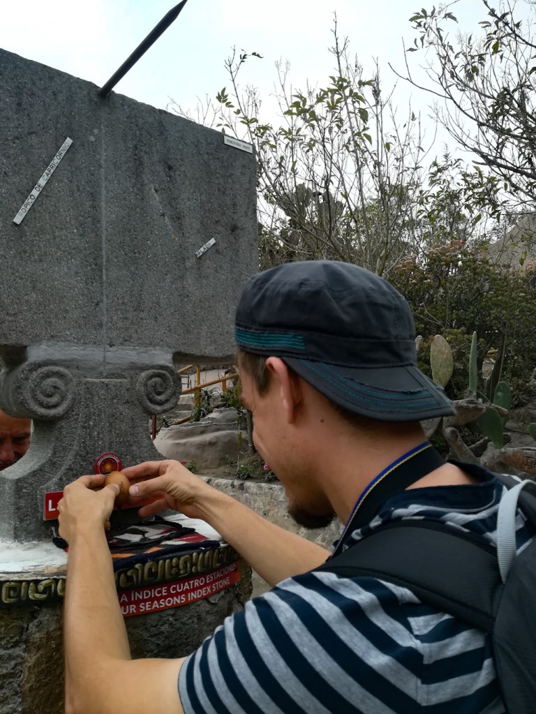 Den Wochenabschluss jedoch verbringen wir nicht in noch höheren Sphären. Wir überschreiten stattdessen den Äquator, besuchen das Äquatordenkmal Mitad del Mundo und erleben die unterschiedlichen Kräfte der Süd- und Nordhalbkugel am eigenen Körper.